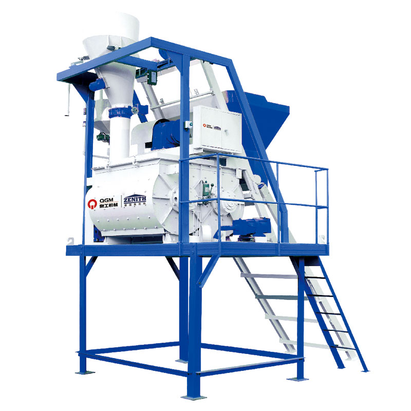 Twin Shaft Mixer เป็นเครื่องผสมชนิดหนึ่งที่มีเพลาแนวนอนสองตัวคอยกวนส่วนผสมคอนกรีตอย่างต่อเนื่อง มักใช้ในโครงการก่อสร้างขนาดใหญ่ เนื่องจากสามารถรองรับคอนกรีตปริมาณมากและยังมีเวลาในการผสมที่รวดเร็วอีกด้วย เพลาทั้งสองในเครื่องผสมนี้หมุนไปในทิศทางตรงกันข้าม เพื่อให้แน่ใจว่าคอนกรีตผสมกันอย่างทั่วถึง ใบมีดบนเพลาได้รับการออกแบบให้เคลื่อนคอนกรีตจากศูนย์กลางของเครื่องผสมไปด้านข้างในลักษณะเกลียว เพื่อให้แน่ใจว่าส่วนผสมทั้งหมดผสมเท่าๆ กัน เครื่องผสมเพลาคู่เป็นที่ต้องการมากกว่าเครื่องผสมคอนกรีตประเภทอื่นๆ เนื่องจากมีประสิทธิภาพสูง เสียงรบกวนต่ำ บำรุงรักษาง่าย และความสามารถในการผสมวัสดุประเภทต่างๆ รวมถึงคอนกรีตแห้ง กึ่งแห้ง และพลาสติก